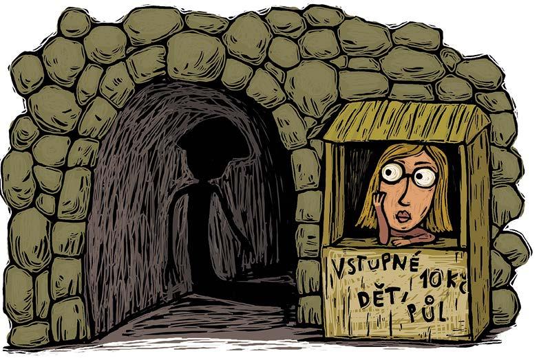 zvláště rozverné náladě, vyznával cestou zpět návštěv nicím do ouška lásku takovými výrazy, kterým by snad rozuměly už jenom babičky jejich babiček. To se pak turistky hihňaly blahem a do toho jim tak trochu trnulo z onoho nezvyklého podzemního úkazu. Ale bylo to jen takové bezpečné strachování, kterým si lidé po stale‑ tí krátí dlouhou chvíli, a dokonce si za něj navykli platit. Není divu, že se řeči o podivnostech podzemí rychle roznesly po městě a se zvědavci se netrhly dveře. Pro jed‑ nou se netrhly i s vědci z místní univerzity, kteří zkou‑ mají akustiku. To si pak Bětka s Matějem odpustili habaďůru s falešnou ozvěnou, protože ji provozovali tak, jako se provozuje cirkus – pro po‑ bavení návštěvníků, a nikoliv pro matení lidí. A taky věděli, že ve světě vědy nemají habaďůry, paskřiviny či kulišárny co dělat. Po druhé se dveře netrhly s učenci zkoumajícími světlo a Bětka s Matějem pro změnu vyne‑ chali kulišárnu s duchem mrtvého císaře. Ze stejného důvodu. A tak vědci vždycky odešli s nepořízenou… či vlastně s pořízenou – s tím, že co se týče akustiky i světla, jsou věci tak, jak mají být.