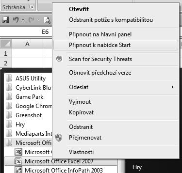 3. Klepněte pravým tlačítkem myši na položku Microsoft Office Excel 2007 nebo Microsoft Office Excel 2010