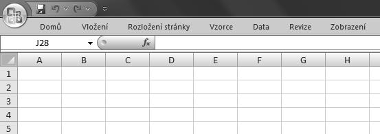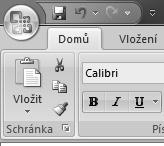 Tlačítko Office nahrazuje nabídku Soubor z předchozích verzí Excelu a nachází se v levém horním rohu. Jestliže klepnete na tlačítko Office , zobrazí se stejné základní příkazy, které byly k dispozici v dřívějších verzích Excelu pro otvírání, ukládání a tisk souboru.
