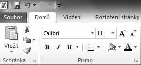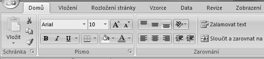 Pracovní prostředí – pás karet, skupiny příkazů