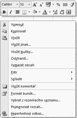 příkazy z místní nabídky dostupné klepnutím pravým tlačítkem myši,