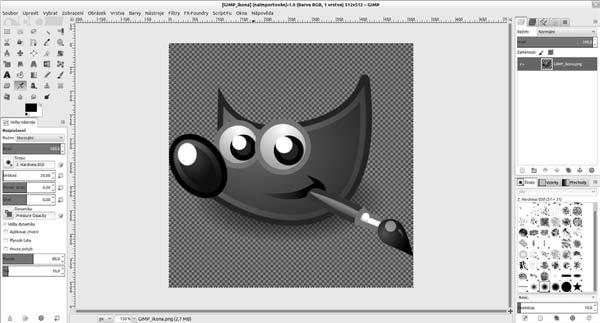 Poznámka: GNU je rekurzivní zkratka pro GNU is not Unix, v překladu GNU není Unix. Jde o projekt operačního systému unixového typu tvořeným aplikacemi, knihovnami a nástroji, do něhož patří právě i GIMP. Jedním z nejznámějších dítek tohoto projektu je operační systém postavený na linuxovém jádře, tzv. GNU/Linux.