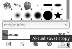 Poznámka: Nezapomeňte, aby se stopa štětce objevila v nabídce GIMPu, je nutné jej restartovat nebo použít tlačítko pro aktualizaci stopy.