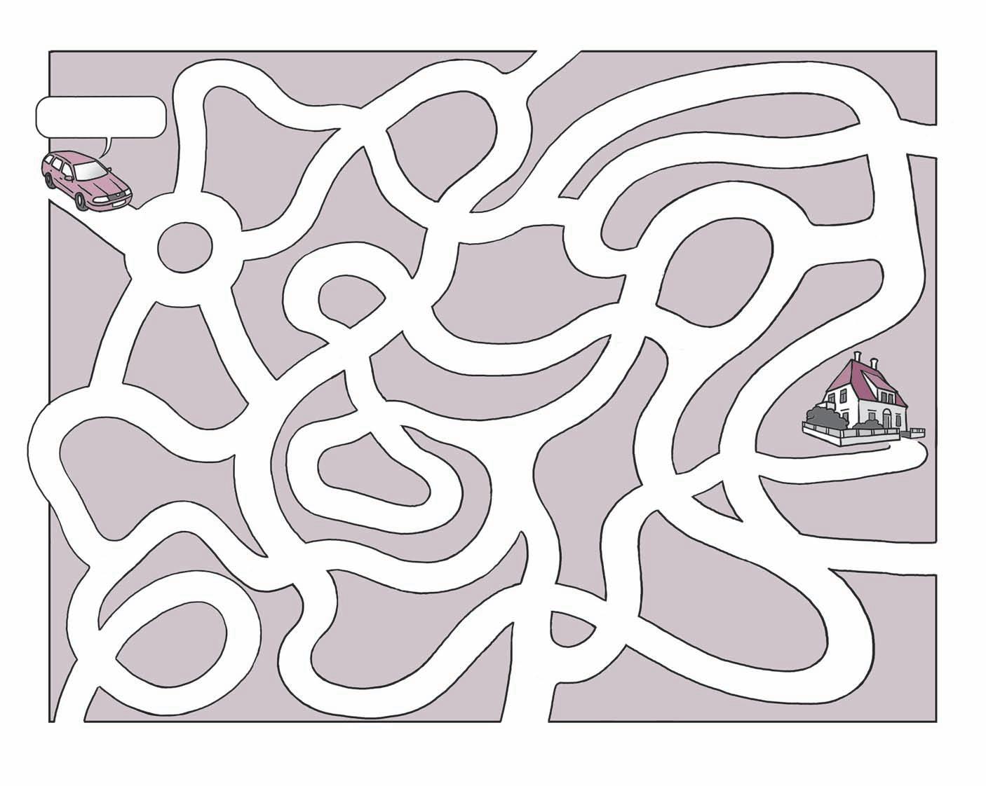 žké! Najdi co nejkratší cestu bludištěm, vyznač ji pastelkou.