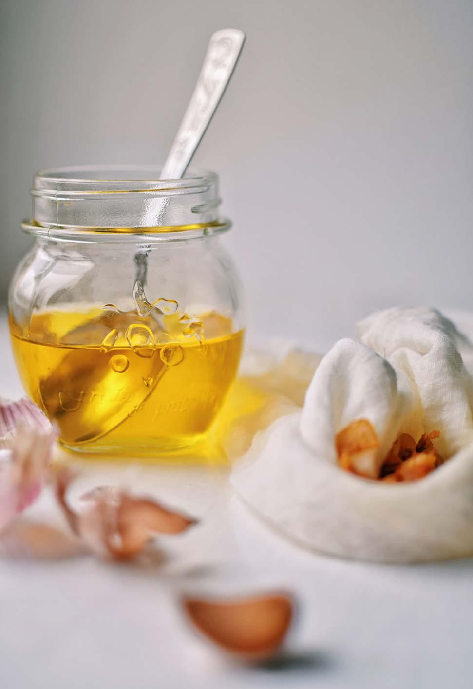 Česnek oloupeme, nakrájíme na plátky a necháme 5 minut odležet. Poté ho přidáme do hrnce s máslem a na mírném plameni necháme 20–30 minut jemně probublávat.