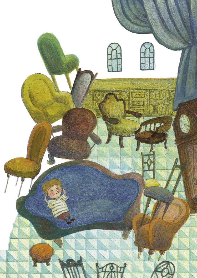V obrovské pohovce se zdál ještě menší a drobnější, než doopravdy byl. Nikdo by nevěřil, že před měsícem oslavil osmé narozeniny a už za několik dní nastoupí do třetí třídy. Vypadal vážně jako drobek. Maminka se občas strachovala, jestli synek vyroste. Ale tatínek se nebál. „Samozřejmě že jednou vyroste,“ říkal. „A kromě toho z něj nemusí být čahoun. Hlavně že má bystrou hlavu a v ní kus fantazie.“