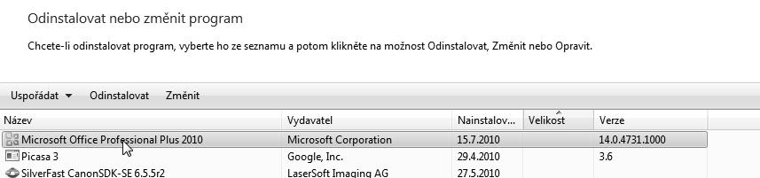 Chcete-li změnit instalaci nebo odebrat sadu Microsoft Office 2010 ve Windows 7, postupujte podle tohoto návodu: