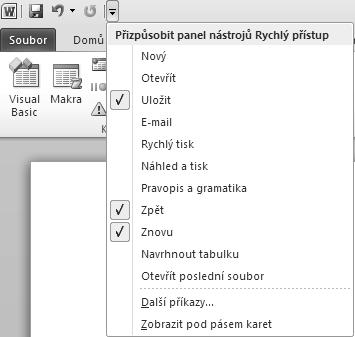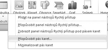 Obrázek 2.9: Dialogové okno Přizpůsobit pás karet