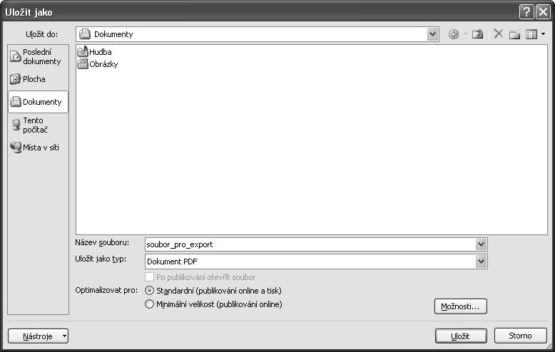 Dále se seznámíte s jednotlivými způsoby uložení vytvořeného dokumentu.