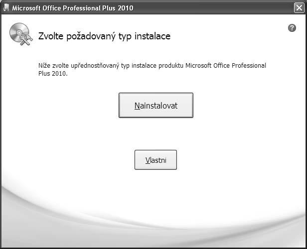 3. Nyní zvolte buď tlačítko Nainstalovat, které nainstaluje aplikace podle výchozího nastavení, nebo zvolte Vlastní a určete si podrobnosti instalace (obrázek 1.2). Dále se tedy zabývejme Vlastní instalací.
