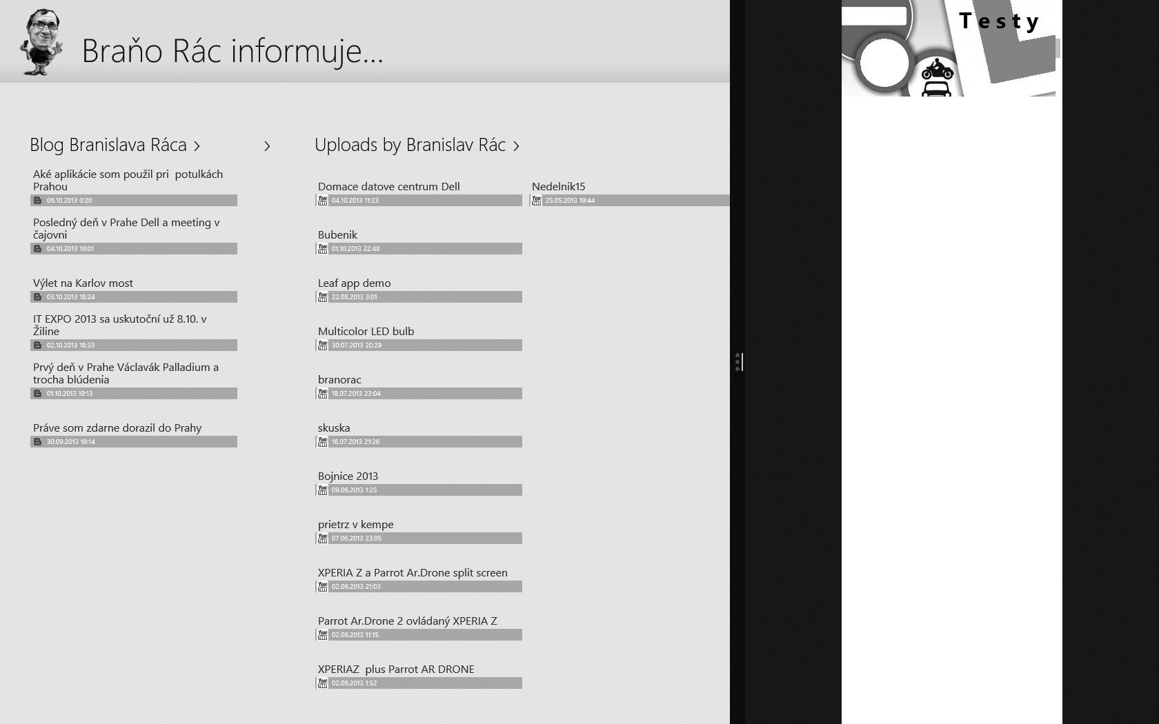 Aplikace zobrazující aktuální přehled slovenských aplikací pro Windows 8 se i přes jednoduchost ukázala jako velmi užitečná, protože ulehčuje uživatelům orientaci ve Windows Store tím, že zúží množinu výběru na slovenské aplikace rozdělené podle kategorií. Aplikace byla vytvořena zpočátku jako cvičný příklad a ukázala se užitečná pro komunitu nových uživatelů Windows 8. Druhá aplikace byla vytvořena na komerčním základu pro vydavatelství PC REVUE.