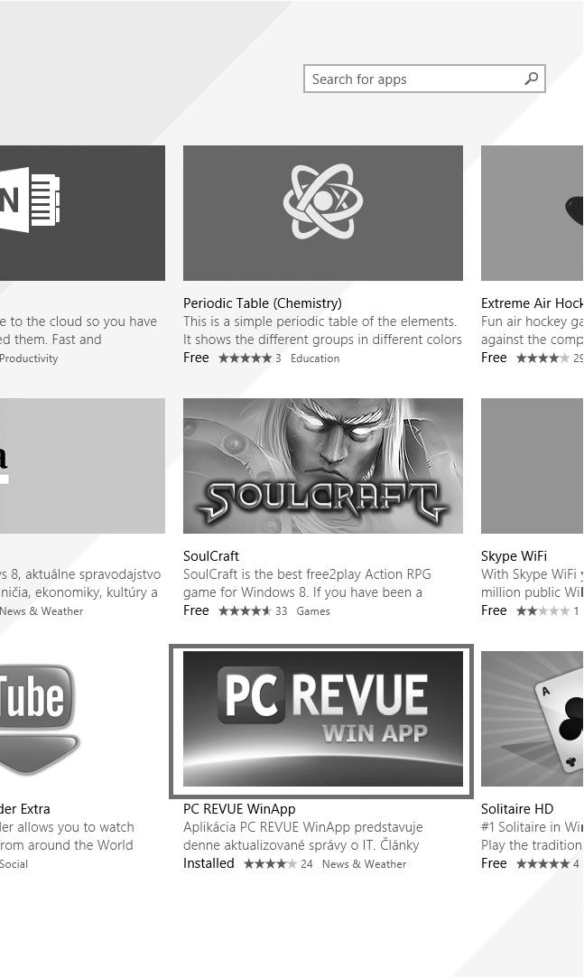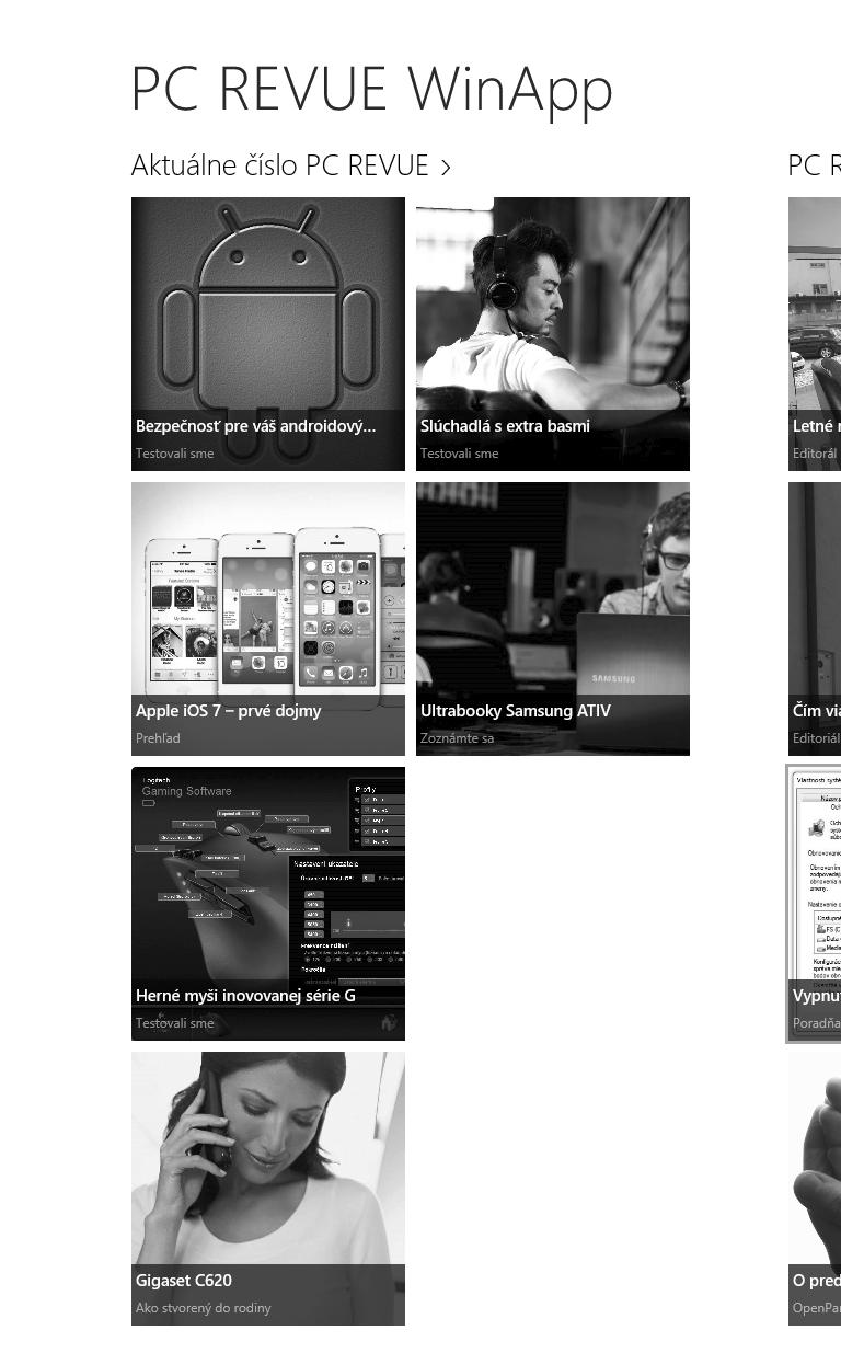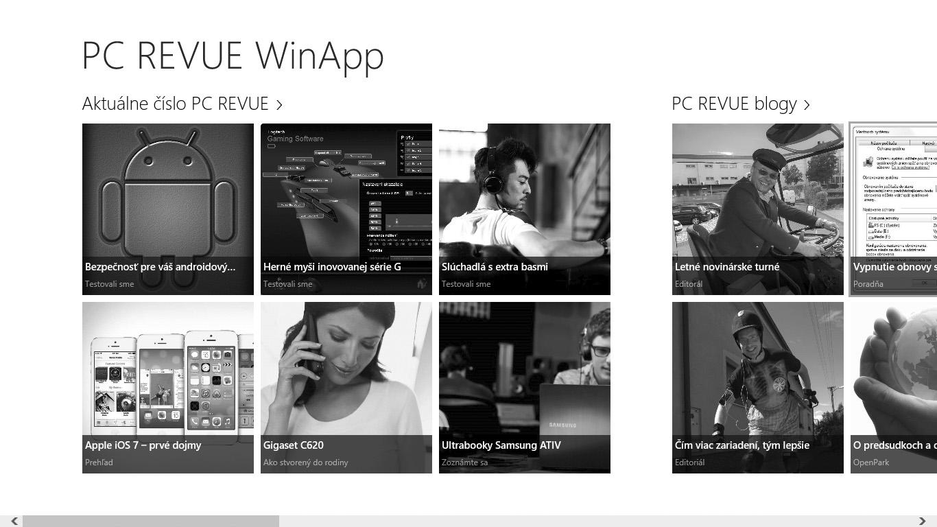 PC REVUE WinApp – slouží k zobrazování bezplatných a později i placených článků počítačového magazínu PC REVUE.
