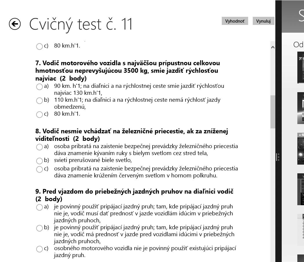 Autoškola testy – 30 cvičných testů ke zkouškám v autoškole. Aplikace je portovaná i na Windows Phone.