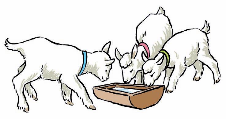 Míla v chlívku. Mám málo mléka pro mladé! Uslyšela to koza Ema ve vedlejším chlívku a koze Míle pomohla. Dala mléko jejím mladým. Víte, jak říkáme mláďátku od kozy? (kůzle)