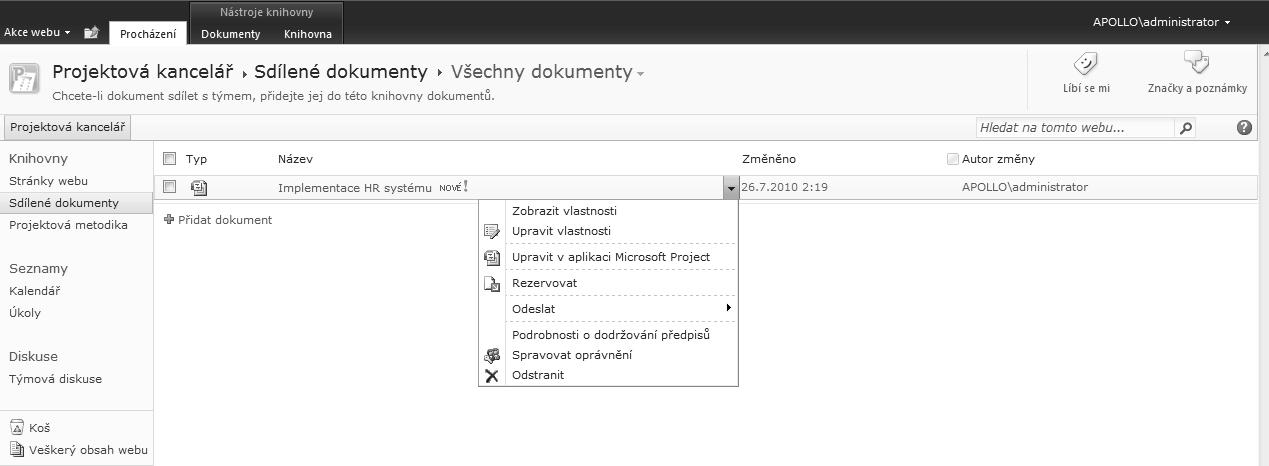 Obrázek 2.7 Projekt v knihovně dokumentů na portálu