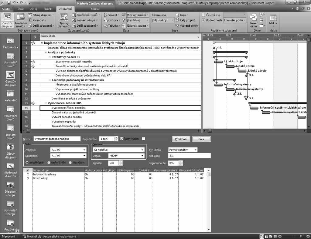 7. Mapa se skládá ze tří úrovní – Úkoly, Zdroje a Přiřazení. Z tohoto tria můžete volit 1-3 možnosti.