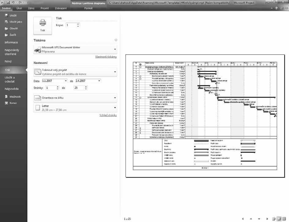 Režimu zpětné kompatibility přístup prostřednictvím Microsoft Office Project 2007 Professional.