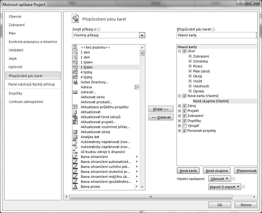 zení Souhrnného úkolu projektu, najdete přímo na kartě Nástroje Ganttova diagramu apod. Dialogové okno Možnosti tak budete využívat velmi zřídka.
