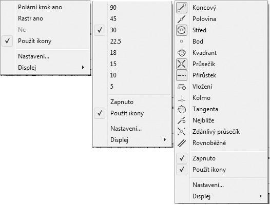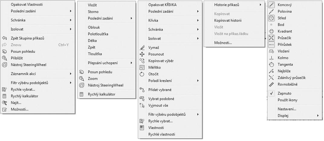 Tip: Pro zadávání voleb příkazů využívejte pravé tlačítko myši. Po jeho stisknutí se zobrazí místní nabídka, ve které jsou patřičné volby zadaného příkazu nabízeny.
