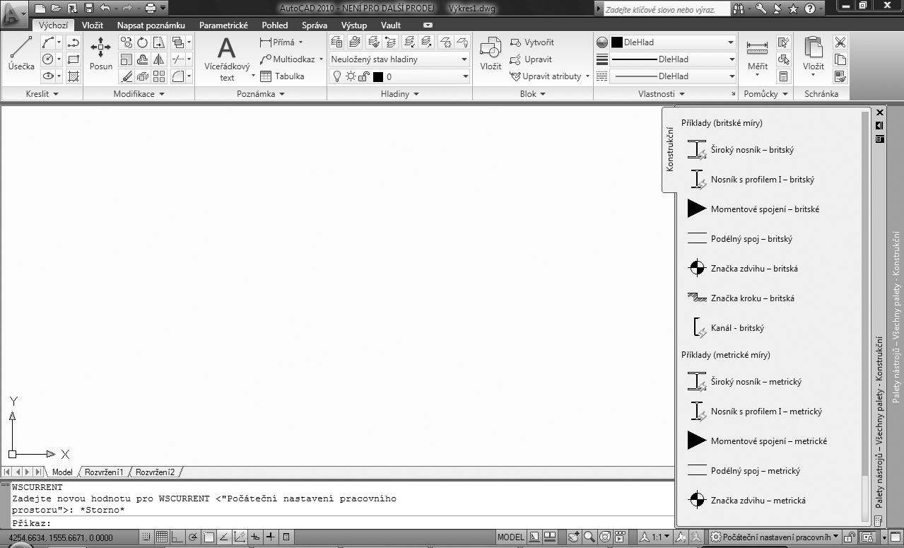 AutoCAD začíná každé sezení s prázdným výkresovým souborem výkres.dwg
