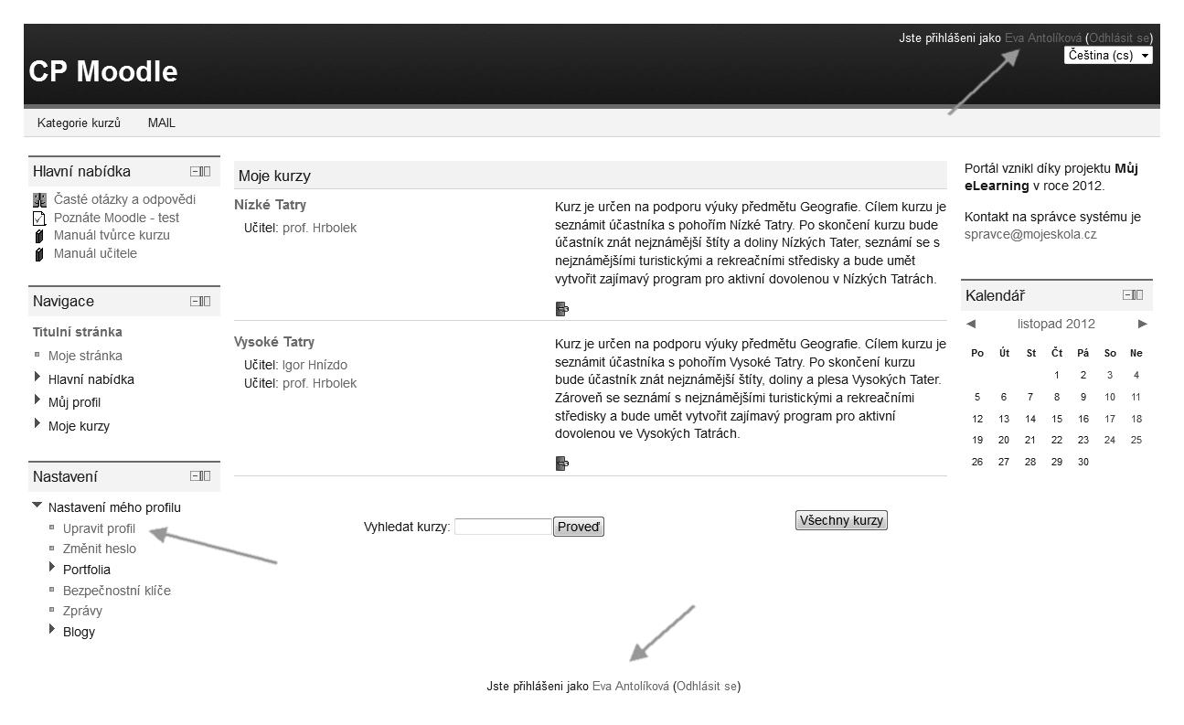 V první kapitole se seznámíte se základní strukturou Moodlu a způsoby navigace mezi jeho stránkami. Vysvětlíme si význam osobní stránky a naučíme se upravovat svůj osobní profil.