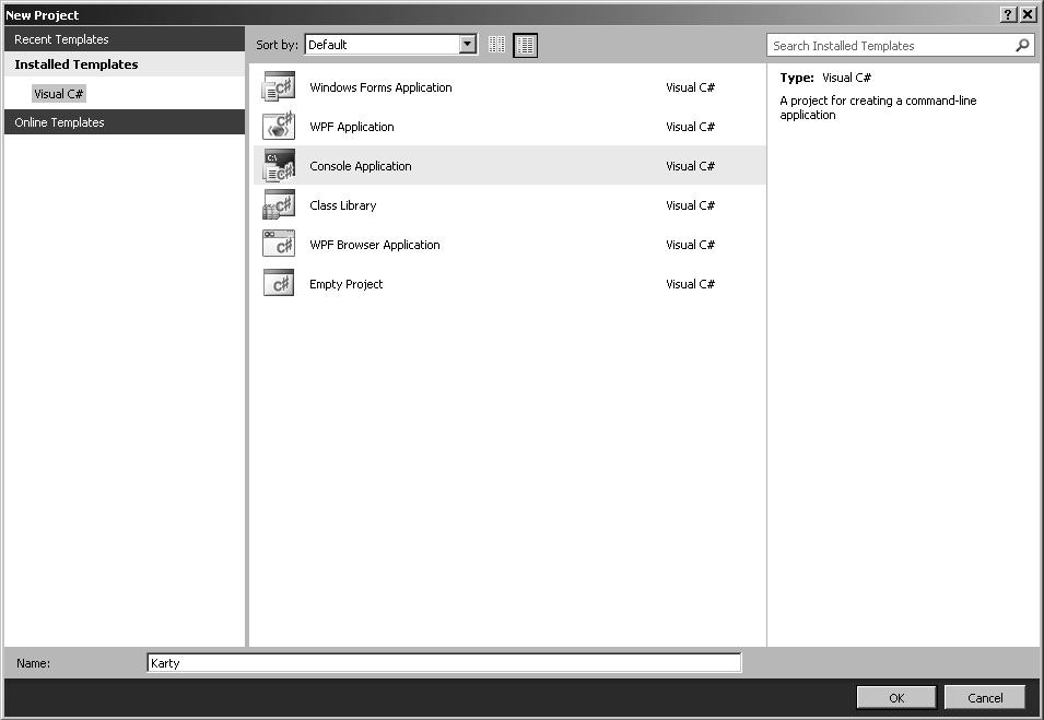 Vaším prvním krokem tak bude založení konzolové aplikace v prostředí Visual Studia Express 2010: