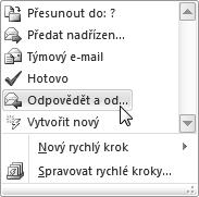 Skupinu Rychlé kroky najdete na kartě Domů uprostřed. V okénku vidíte obvykle tři položky z nabídky akcí, ale obecně jich může být více.