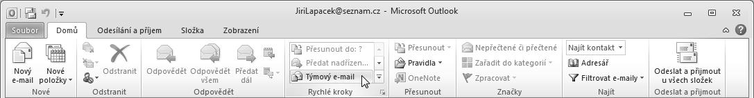 Domů jsou vždy soustředěna tlačítka k vytvoření a zpracování položek aplikace Outlook, jako jsou zprávy, položky kalendáře nebo kontakty.