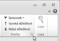 Dialog pro určité komplexní nastavení nějakých parametrů se také otvírá pod některými skupinami tlačítek po klepnutí na spouštěcí tlačítko dialogu – najdete ho vždy v pravém dolním rohu skupiny tlačítek.