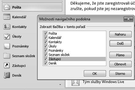 V dolní části navigačního podokna můžete změnit počet a pořadí velkých navigačních tlačítek. Postupujte takto: