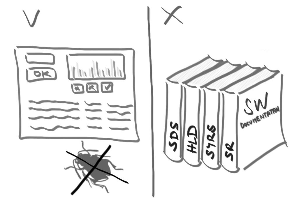 Mnoho softwarových firem na toto zapomíná a chce ohromit zákazníka množstvím dokumentace, ale když dojde na vlastní demo, výsledek často dokumentaci odporuje a zákazník je z „funkčního“ softwaru poněkud překvapený. Dokumentace je důležitá, ale neměla by převážit nad vlastním produktem; měla by primárně sloužit jako reference pro oblasti, které nejsou intuitivní a snadno pochopitelné. A takových oblastí by mělo být minimum.
