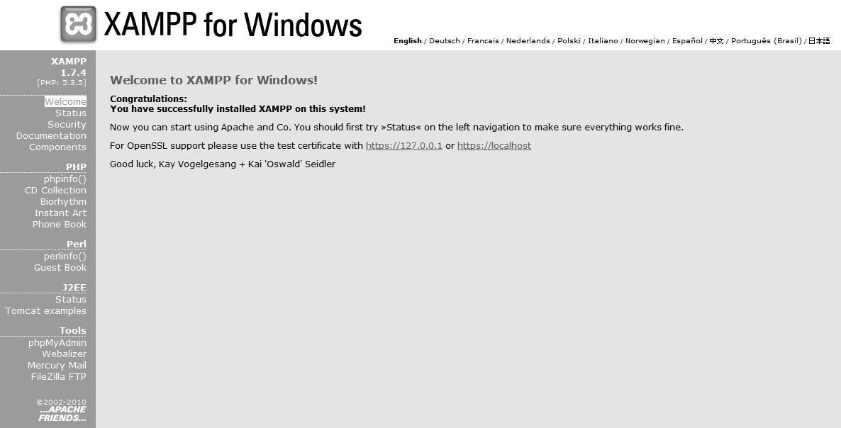 Starting XAMPP 1.7.4...