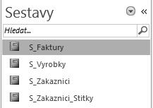 Obrázek 1.5: Seznam sestav v databázi zobrazený v navigačním podokně