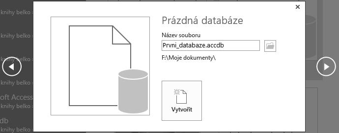 2. V zobrazeném okně zadejte název souboru databáze Prvni_databaze a vyberte umístění, například Moje dokumenty.