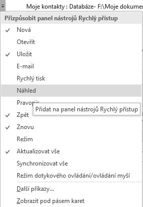 Obrázek 1.11: Karta Domů s možnostmi změny zobrazení formuláře v otevřené databázi Moje kontakty