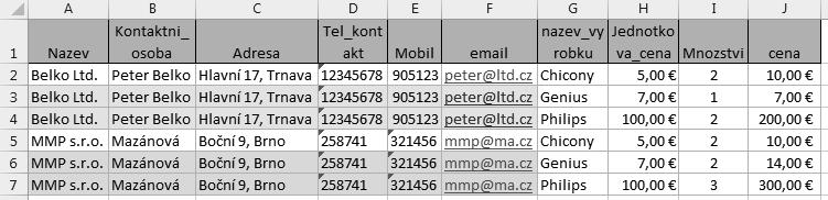 Spojení údajů hlavičky faktury s údaji zákazníka.
