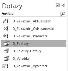 Obrázek 1.3: Seznam výběrových a akčních dotazů v databázi zobrazený v navigačním podokně