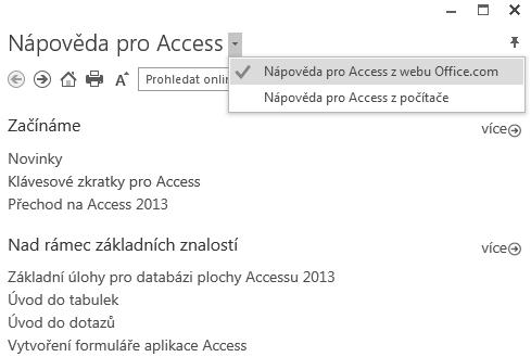 Obrázek 1.20: Okno Nápověda pro Access umožňuje vyhledávat informace lokálně nebo z online zdrojů