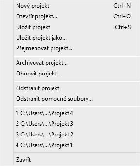 Vypnete-li váš program a po určitém čase jej opět spustíte, otevřete váš rozpracovaný projekt s použitím klávesové zkratky Ctrl+O, popř. v nabídce Program Otevřít projekt... Otevře se vám složka My Projects, kam jsou ukládány vámi vytvořené projekty. Nyní stačí pouze vybrat požadovaný projekt. Panel nástrojů Program také nabízí možnost přímého otevření některého ze čtyřech naposledy otevřených projektů.
