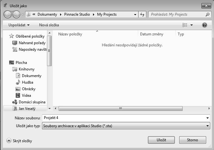 Obrázek 1: Dialogové okno Uložit projekt