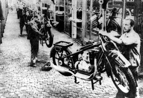 Tak vznikaly půllitrové Jawy na počátku třicátých let. Na obrázku je dokončována montáž modernizované Jawy 500 OHV