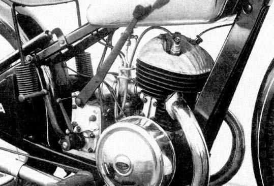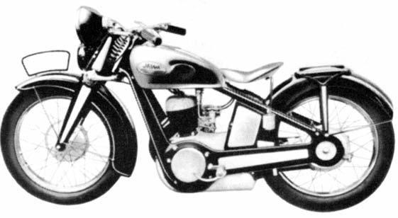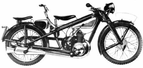 3750ot/min. akompresním poměru 6,7:1. Třístupňová převodovka typu Albion sjednokotoučovou suchou spojkou byla ovládána ruční pákou vedoucí přímo zpřevodové skříně. Podvozek tvořil rám vlastní konstrukce zlisovaného plechu stejně jako přední kyvná páková vidlice odpružená jednou vinutou pružinou. Tzv. podrámová nádrž měla objem 10,5 litru, což při spotřebě asi 3 až 3,5 litru benzínu míchaného solejem vpoměru 25:1 zaručovalo dostatečný akční rádius. Na kola prvních sérií byly montovány pneumatiky orozměrech 2,75x25 a70kg vážící motocykl dosahoval nejvyšší rychlosti 70 až 80km/hod. Zákazník si mohl vybrat ze dvou základních provedení. Rozdíl mezi lidovější verzí Standard aluxusnější Speciál představovalo především množství použitého chromu adoplňků.