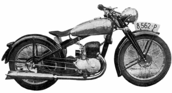 Pohonnou směs připravoval nejdříve karburátor Villiers, který však brzy nahradil karburátor Grätzin. Spaliny byly zmotoru odváděny dvěma výfukovými potrubími ukončenými plochým tlumičem. Zájemce onovou dvěstěpadesátku si mohl vybrat, zda bude třístupňovou převodovku ovládat rukou nebo prostřednictvím nožního řazení. Lisovaný rám se osvědčil už při stavbě stopětasedmdesátky isilnějších třistapadesátek, atak byl použit ivtomto případě. Palivová nádrž na 10 litrů směsi oleje abenzínu (vpoměru 1:20) stačila na dojezd zhruba 350km. Poměrně lehká dvěstěpadesátka vážící 95kg si totiž vystačila se 3l/100km adokázala uhánět až 100km/h. To vše za 5490Kč. Vroce 1936 neexistovala výhodnější koupě, atak není divu, že do konce roku 1946 spatřilo světlo světa na 14 000 těchto motocyklů.