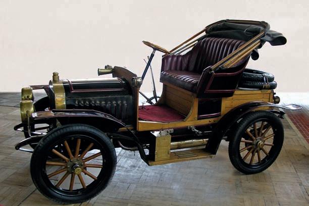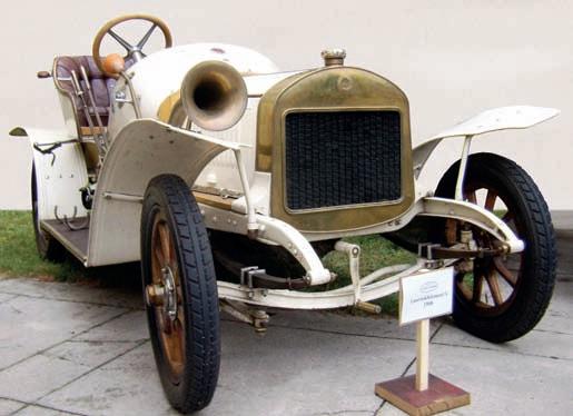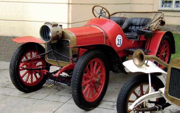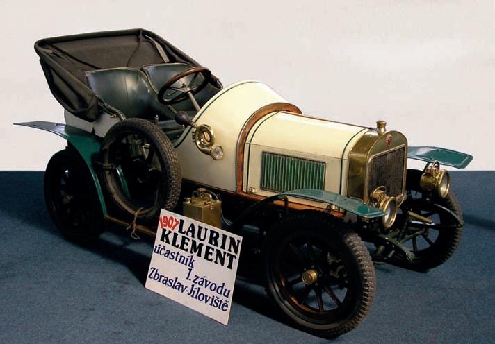 Dvoumístná sportovní voituretta Laurin Klement typ BSC z roku 1908 byla poháněna řadovým dvouválcovým motorem o objemu 1,4 litru