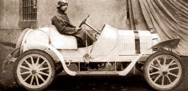 Klement typ FC z roku 1908. Za volantem sedí ing. Otto Hieronymus.