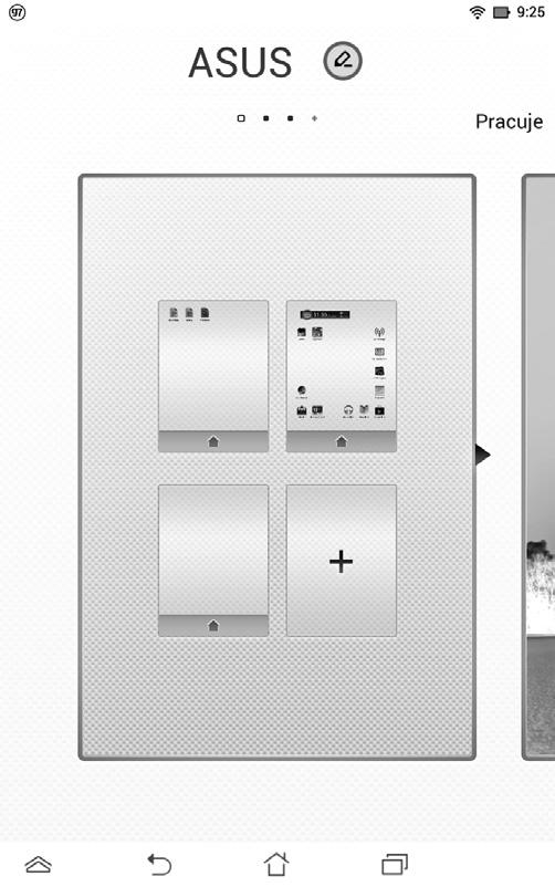 Zkuste na libovolné ploše přiblížit dva prsty k sobě, jako když zmenšujete zobrazení obrázku v Galerii. Pokud se zobrazí náhledy ploch, můžete s nimi pracovat obdobně jako se zástupci aplikací či widgety na plochách. Klepnutím na znak plus na poslední miniatuře plochy přidáváte. Nepotřebnou plochu odstraníte tak, že na ní podržíte prst, v záhlaví obrazovky se objeví pole Odebrat (Odstranit apod.) a plochu na něj přesunete. U některých zařízení lze odebírat pouze prázdné plochy.
