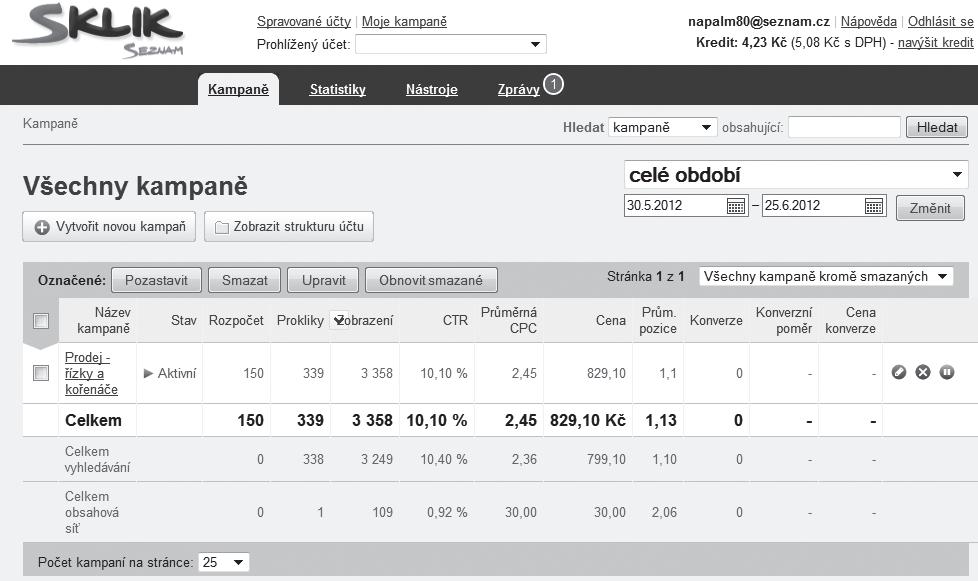 A díky rozhraní a nástrojům PPC systému můžete snadno nejenom kontrolovat vývoj kampaně, ale také její účinnost. Zjistíte, kolikrát se ta která reklama zobrazila, na jaké pozici a jak často