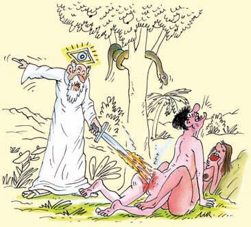 neměl v ráji dosti místa a že jenom Evu klátil pámbu z Edenu ho vrátil.