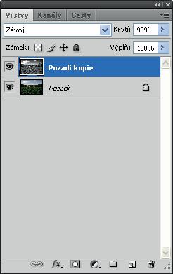 2. Nyní upravte režim krytí vrstvy Pozadí kopie. V horní části panelu vyberte v rozbalovacím seznamu možnost Zesvětlit nebo Závoj, a případně ještě snižte hodnotu Krytí