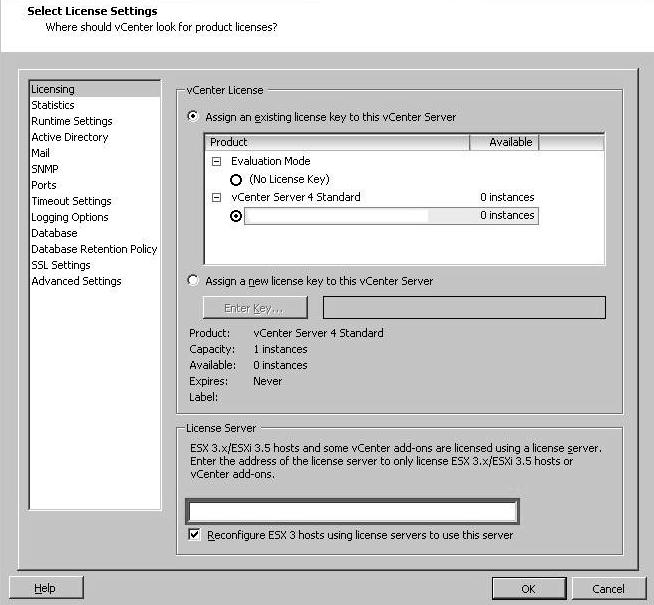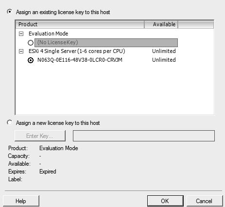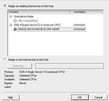 Obrázek 6: Okno pro nastavení licencování ESX/ESXi 4.x